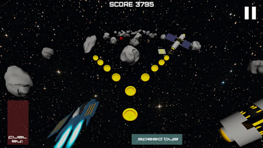 Feel the speed, fear the dangers. Navigating your way between asteroids and satellites you will realise how challenging an adventure in the wide open space might be.