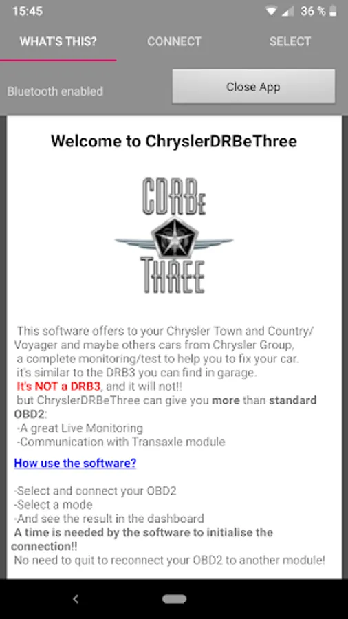 This software is able to read DTC and monitor your Chrysler Town and Country from 2001 to 2007, and eventually many others cars of Chrysler/Dodge/Jeep company.