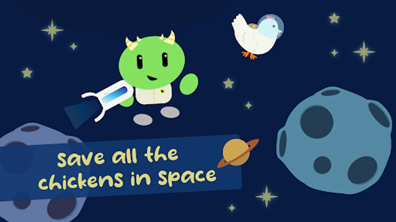 После запроса куриц у Земли, космолет с ними был отправлен на вашу планету. Однако, по пути он врезался в астероид и теперь курицы дрейфуют по всему космосу. Помогите генералу собрать всех куриц и отправить на планету!