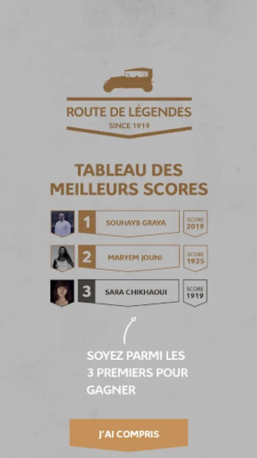 Route de Légendes is a game developed by Citroën Tunisia on the occasion of the brand's centenary to discover the brand's flagship models since its inception. Drive the most beautiful cars of the brand to the rafters and discover their stories while having fun.
