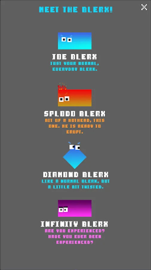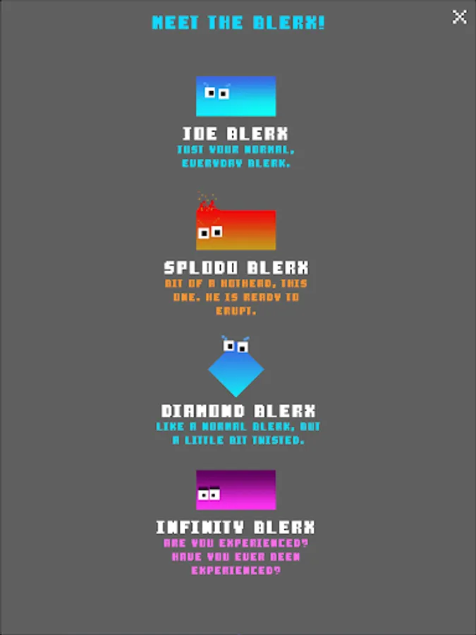 Blerx! is a fresh spin on the classic retro arcade brick blaster game. Your mission: blast all the Blerx. Just tap where you want to shoot, and when the counter goes down to zero, they're history. Different blerx have different effects, and you only have so many shots, so there's a bit of strategy involved too. But mostly, Blerx is a whole lot of mindless, relaxing fun.