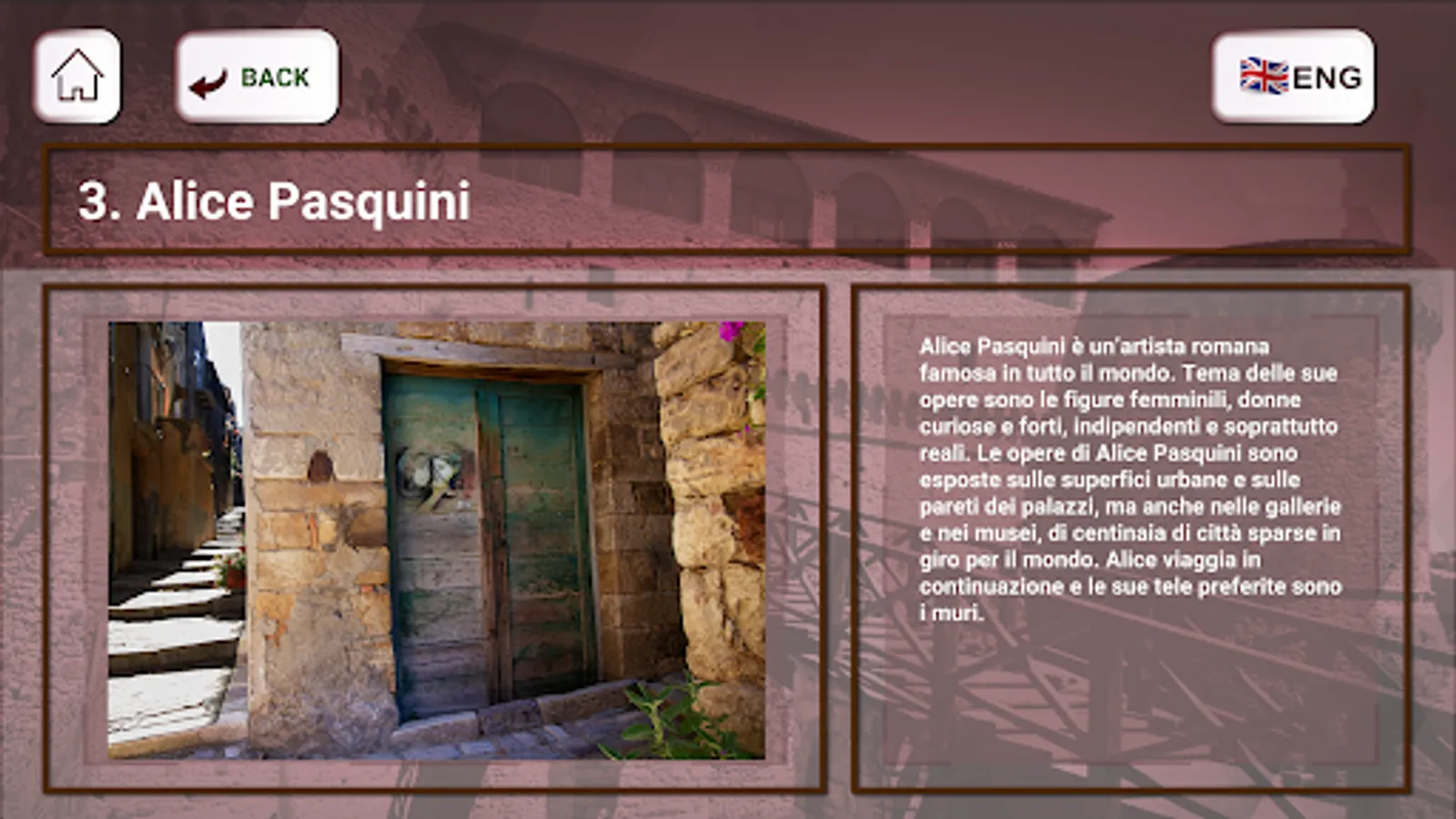 La realtà aumentata è una nuova tecnologia che consente di sovrapporre elementi virtuali alla realtà, e sta riscontrando sempre maggiore successo ove applicata ai beni culturali e quindi fruita da parte del pubblico. Adattata al settore del patrimonio culturale e dei musei, la Realtà Aumentata offre nuove prospettive per la presentazione dei siti e delle opere, consentendo così di ricreare elementi scomparsi, inserire informazioni complementari, ricostruire scene o allestimenti con una modalità al contempo spettacolare, ludica ed educativa.