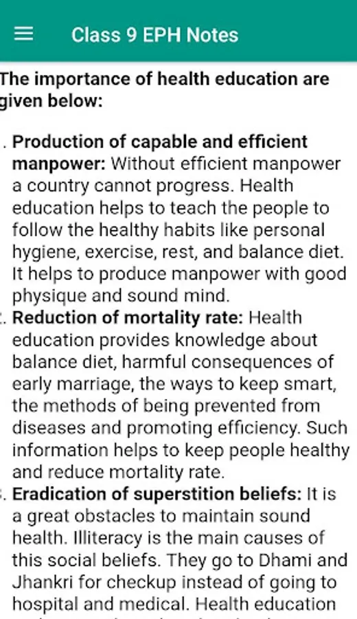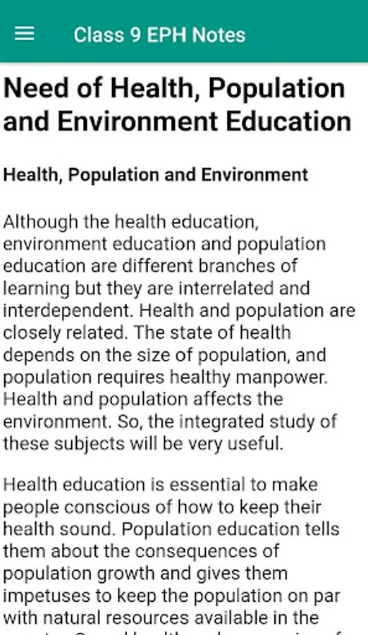 Complete Guide and Notes Of Class 9 EPH (ENVIRONMENT POPULATION AND HEALTH) .