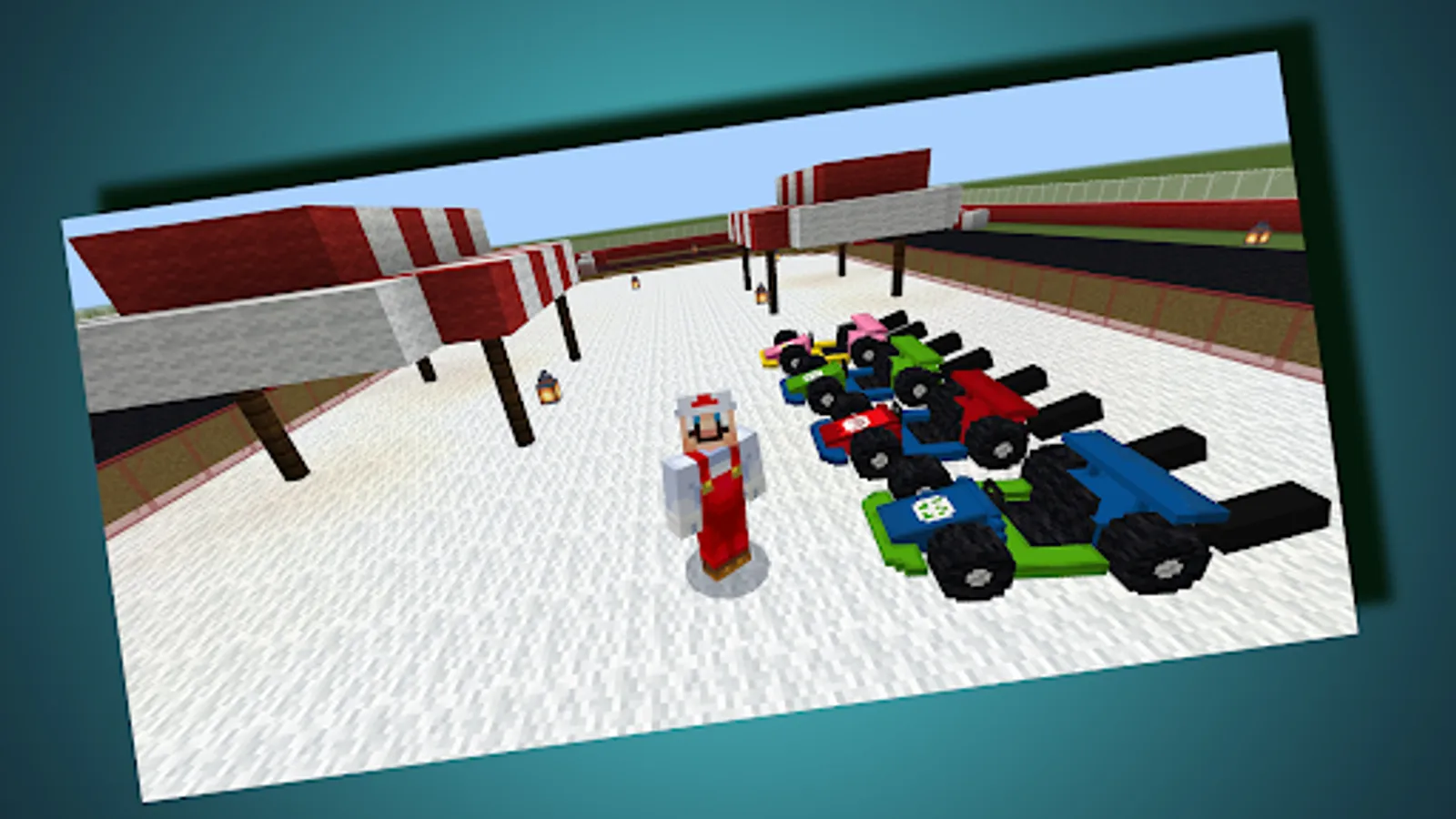 With the Mario Kart mod, you get four unique karts and a race track. The map was created specifically for karting competitions. The speed of each kart is increased by 4 times.