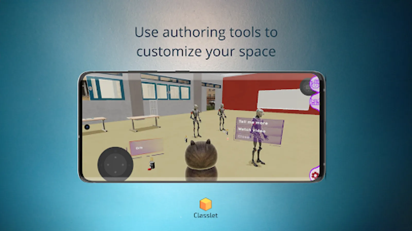 A metaverse learning app for private virtual learning spaces. Create your own space, customize objects and dialogues for your learning goals. Get easy to use authoring tools to help you manage your content.