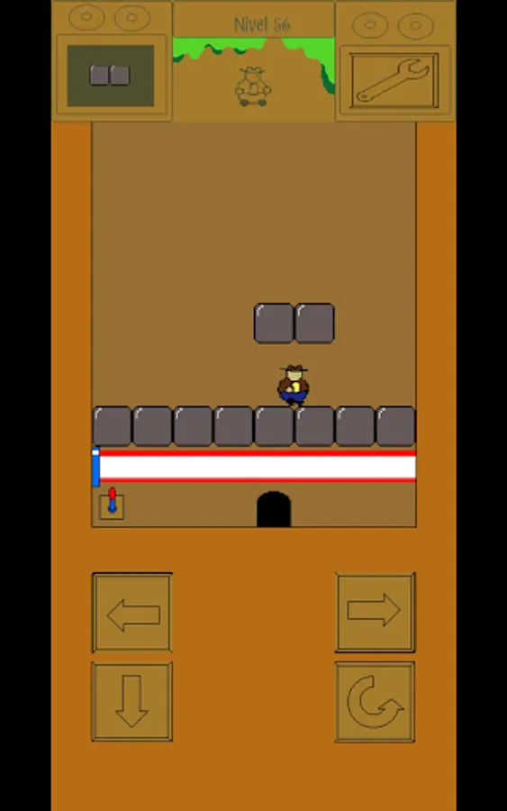 Fernandito Jones has been trapped in the temple of the terrible God Plim and only you can help him out. Move the blocks that fall from the sky and form a ladder that allows Fernandito to reach the exit door. But don't let the blocks reach the top or the volcano below the temple will erupt!