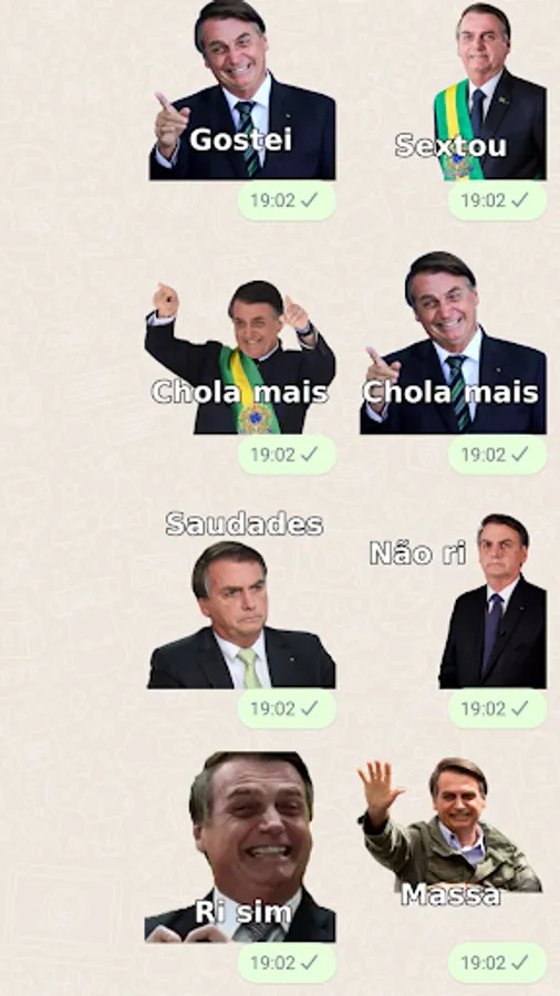 Stickers from Jair Bolsonaro's zap! Download the app and send it to groups of friends and family on whatsapp!