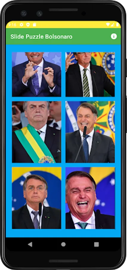 Challenge yourself to assemble all of Bolsonaro's sliding puzzles in this amazing and fun game! Share the images of the president with your friends and family on zap zap and social networks!