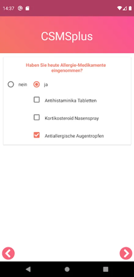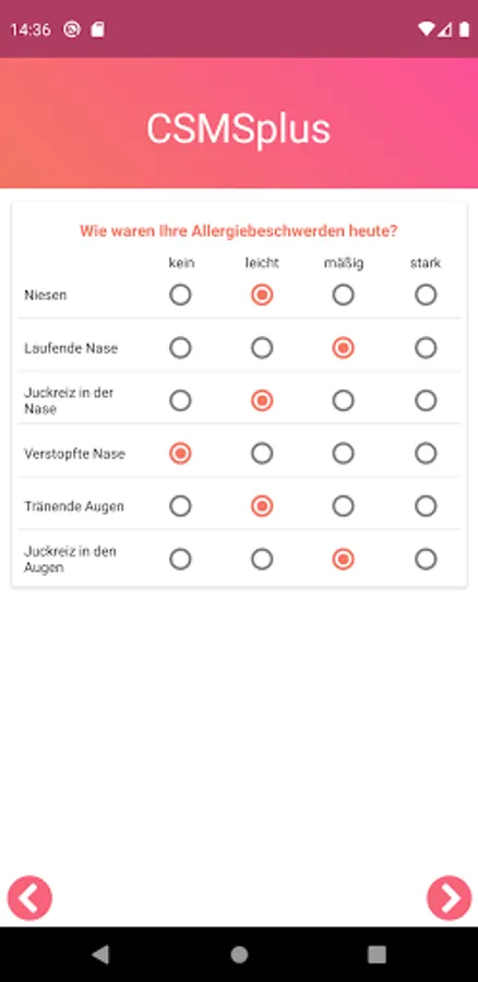 Therefore, it is essential that the allergy symptoms are documented on a daily basis. If you forget to document the symptoms, the App will remind you of the entry.