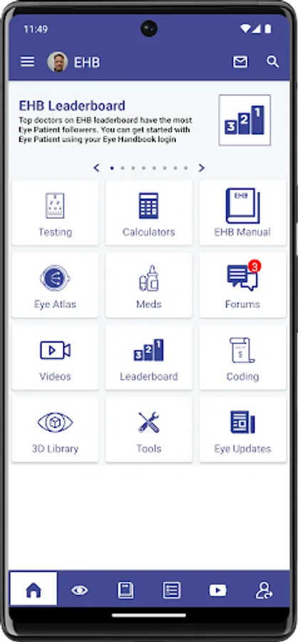 Eye Handbook (EHB) is an eye care reference book and an all-in-one app for Ophthalmologists, Optometrists as well as Students/Residents pursuing the field of eye care.