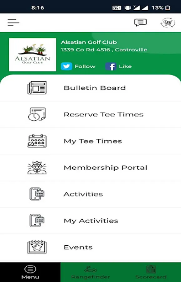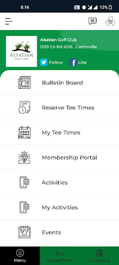 Alsatian Club gives you access to an on course rangefinder, live scoring system, course information, weather updates, tee-time booking service, and messaging systems functions. Additionally, Alsatian Club app may be used to sign up for events, view your membership portal, order food and beverage, and to receive course promotions at Alsatian Club.