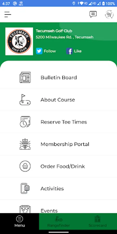 Tecumseh Golf Club gives you access to an on course rangefinder, live scoring system, course information, weather updates, tee-time booking service, and messaging systems functions. Additionally, Tecumseh Golf Club app may be used to sign up for events, view your membership portal, order food and beverage, and to receive course promotions at Tecumseh Golf Club.