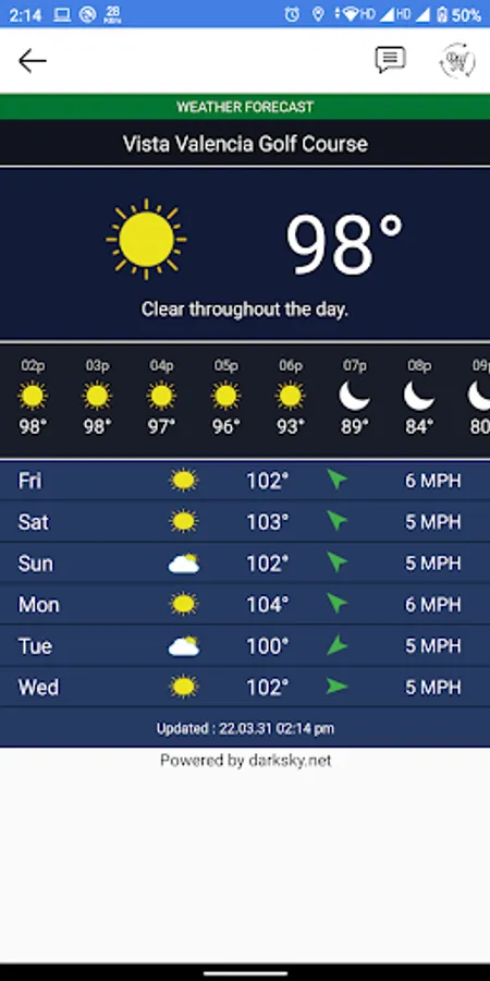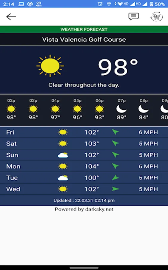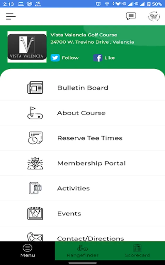 Vista Valencia Golf Course gives you access to an on course rangefinder, live scoring system, course information, weather updates, tee-time booking service, and messaging systems functions. Additionally, Vista Valencia Golf Course app may be used to sign up for events, view your membership portal, order food and beverage, and to receive course promotions at Vista Valencia Golf Course.