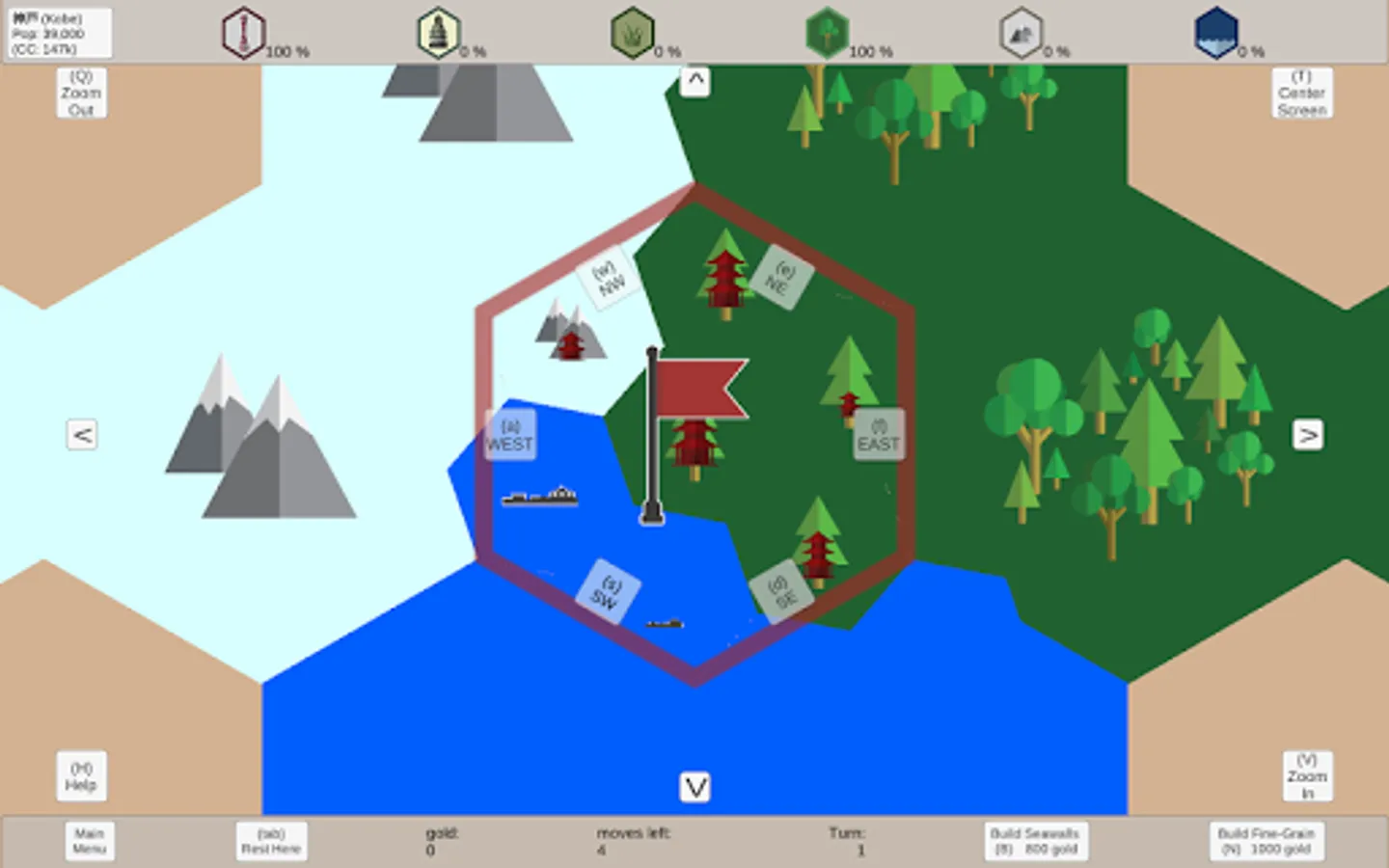 Fast-paced grand strategy game with fractal zoom (hexagonal rosette tiling).