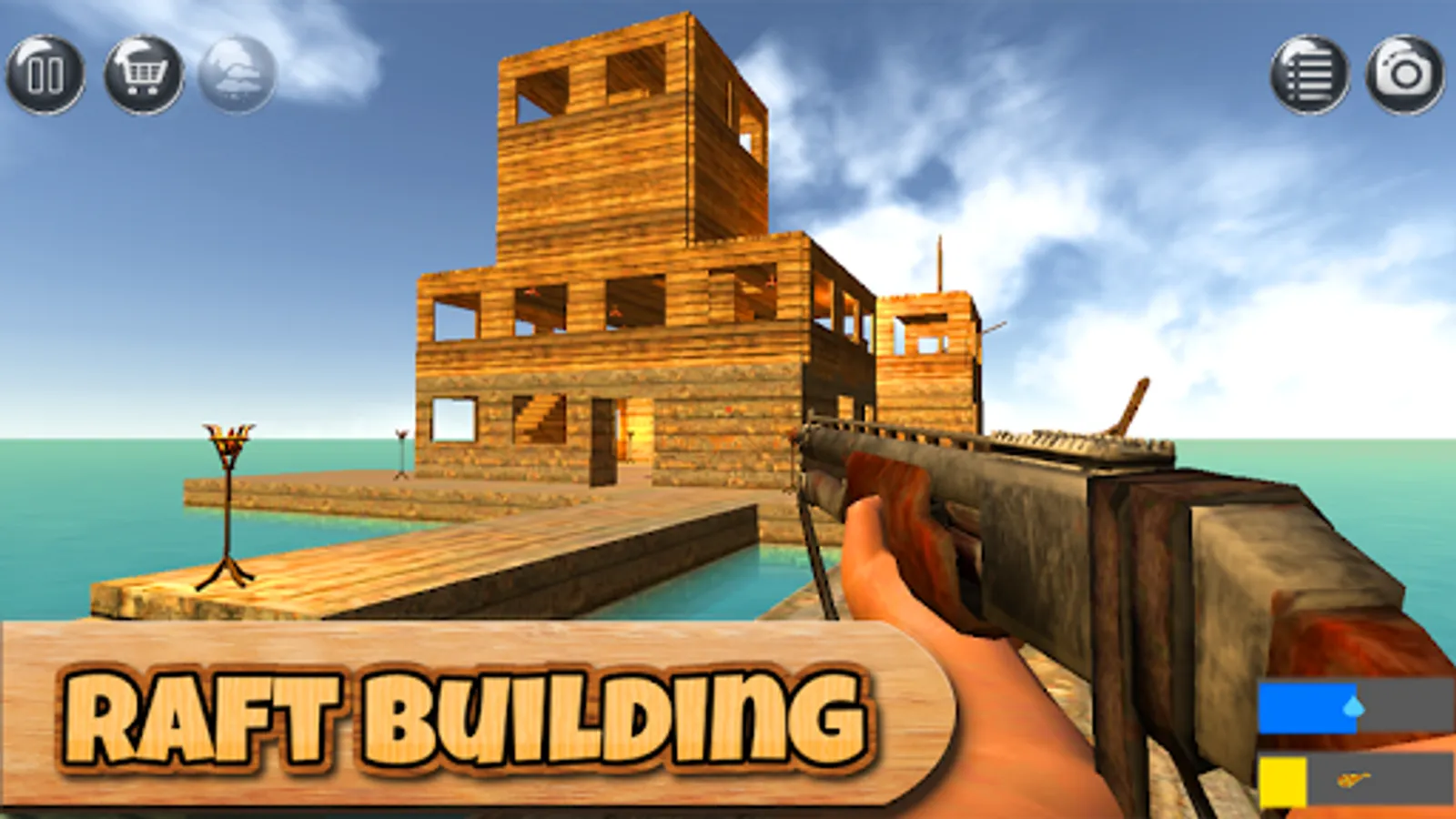 With deadly sharks and sea monsters around you your goal now is to find water and food and build a raft to make it through