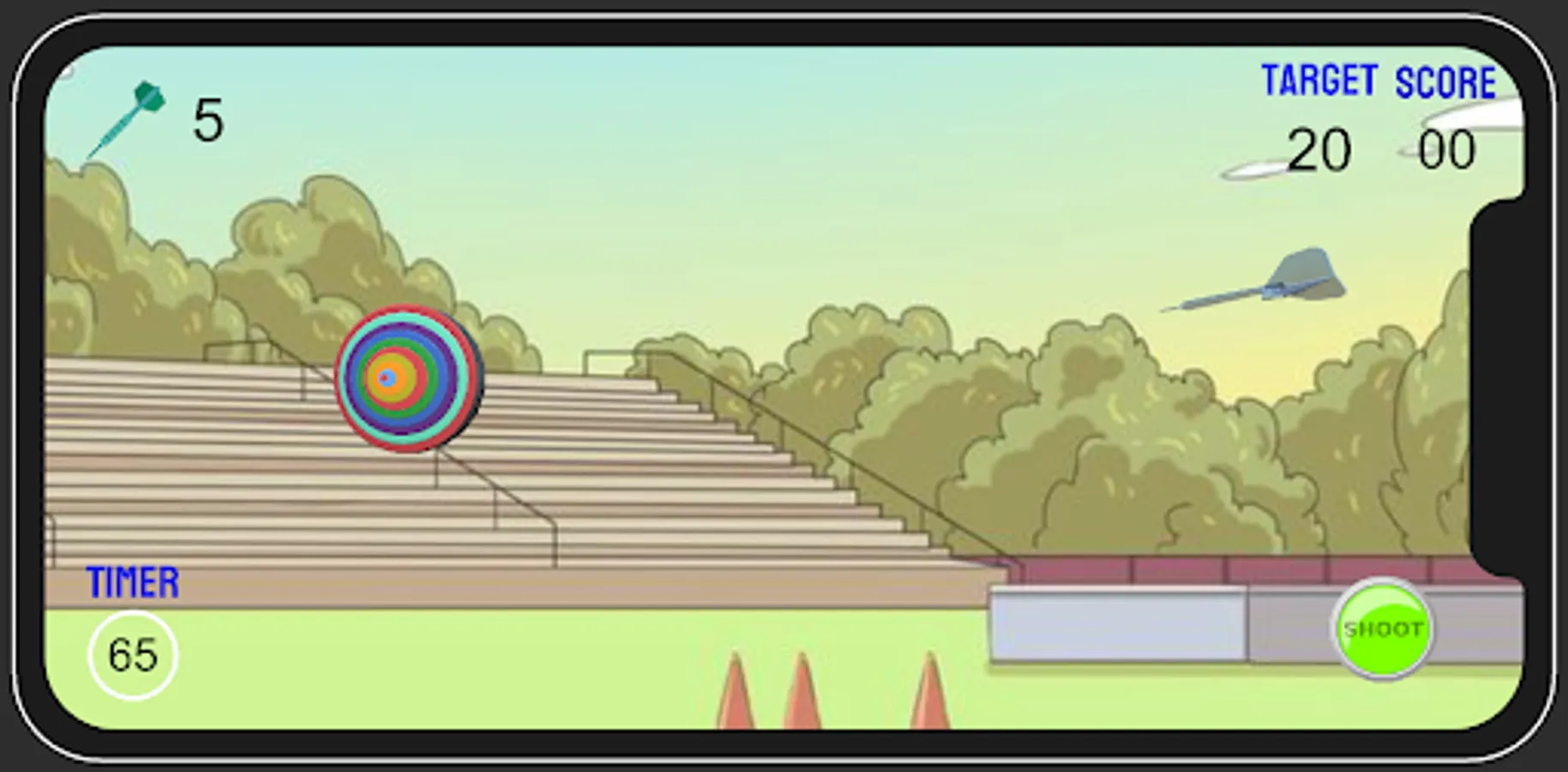 This is the game of darts. Choose different difficulty levels and try to beat the game. Higher the difficulty lesser the time.