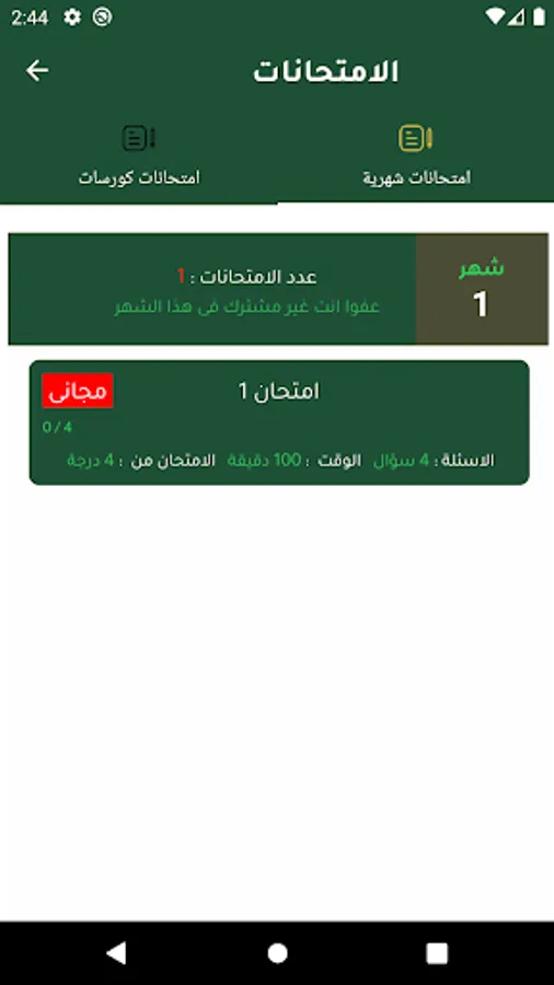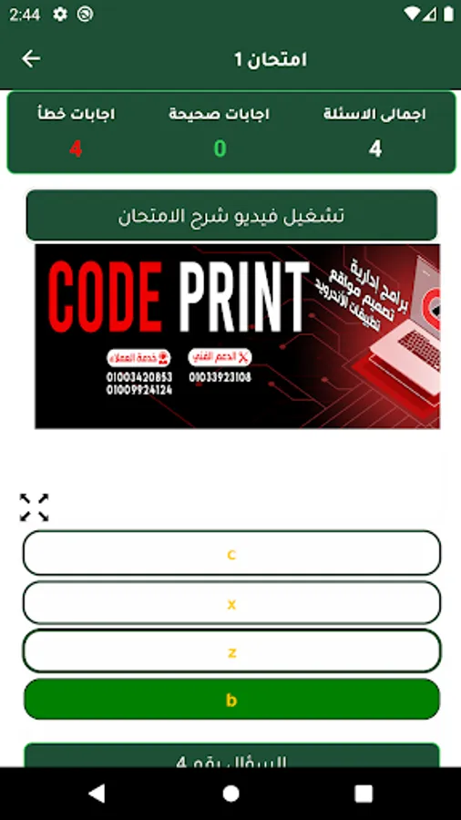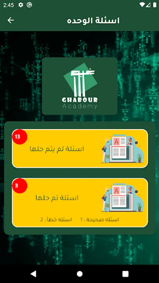 التطبيق يحتوى على اختبارات يتم تحميلها اسبوعيا لمتابعة مستوى الطالب وتنمية مهارات التفكير والابداع