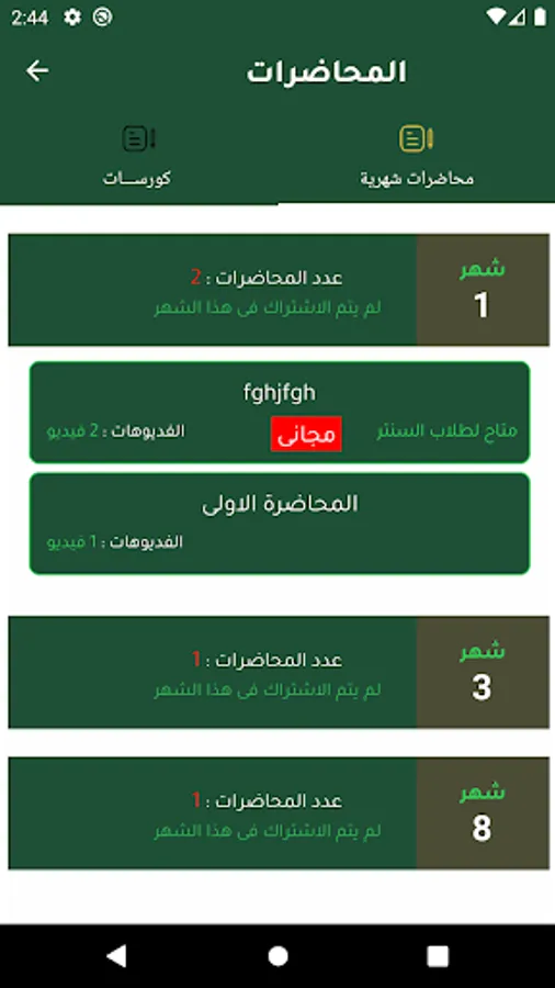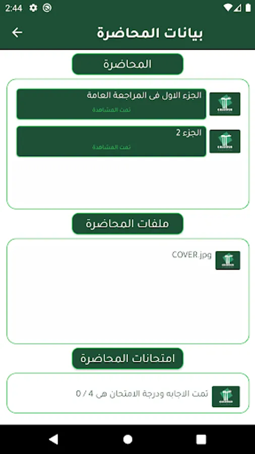 البرنامج يحتوى على تبويب خاص ومنفصل لكل باب فى صورة فيديوهات ولكل فيديو إمتحان وملفات خاصة بالفيديو
