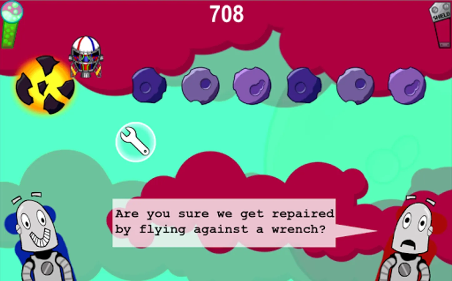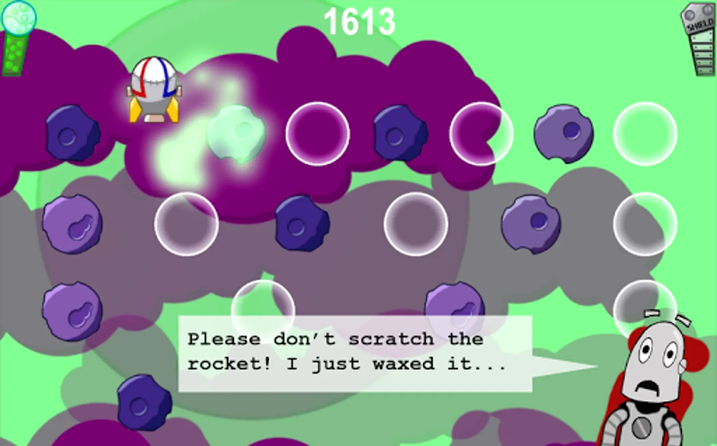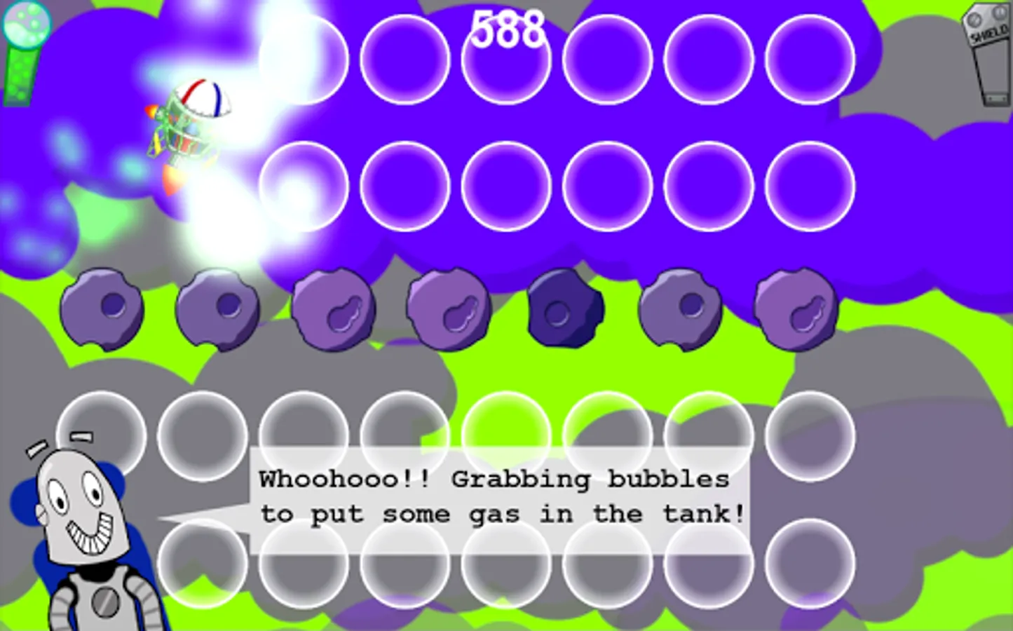 Get ready for a bumpy rocket ride into the atmosphere of an alien planet. Help two droids evade meteors, grab gas and repair bubbles on their way down to the surface!