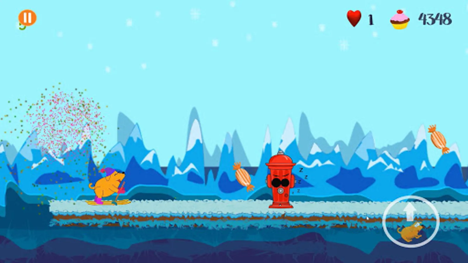 Your Dizzy Dog runs across the Earth and universe. Don’t let him be hungry and exhausted during the trip. Tap to jump catching all tasty cookies, candies, icecreams on the way. Use fireplug to drink water. Watch out!! Beware of cactus. It’s makes your Dizzy slow. Collect Extra bonus and special power. Your DizzyDog is still hungry