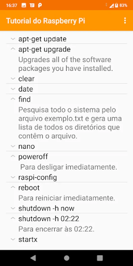 Using Raspberry Pi Tutorial in Portuguese, learn how to implement devices with the raspberry pi, like the mouse, keyboard and monitor, and make a fully functional Raspberry Pi PC. In this raspberry pi app, learn to implement devices and modules like temperature sensors, ultrasonic sensors, Buzzers, IRs, DC Motors, Servo Motors, and many more with the raspberry pi, and make cool raspberry pi projects with these. The app will be regularly updated with new and awesome raspberry pi projects. Also included in this app is a handy raspberry pi raspbian list of oft-used commands for quick reference for programming in linux your raspberry pi.