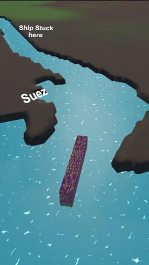 A realistic representation of the Suez Canal and a cargo ship in real proportion to get the full feeling of steering trough a narrow canal like this.