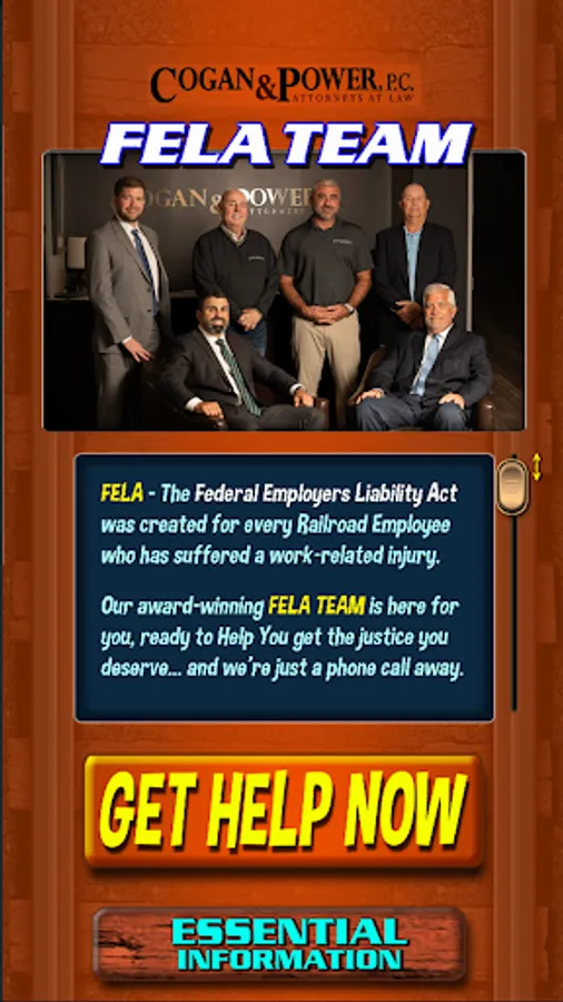 Talk 'LIVE' with with experienced attorneys and investigators from Cogan & Power's award-winning FELA Team at the touch of a button.