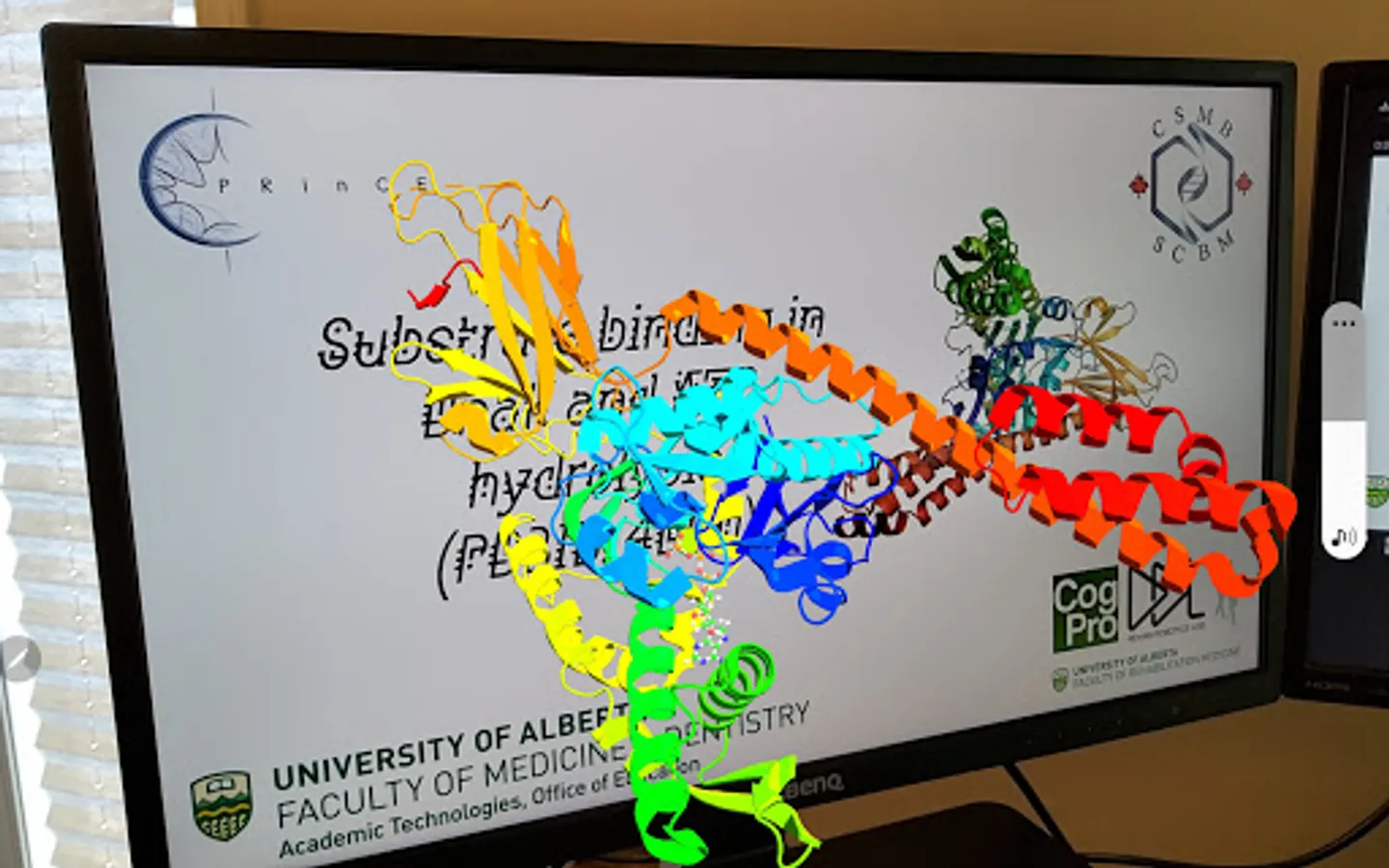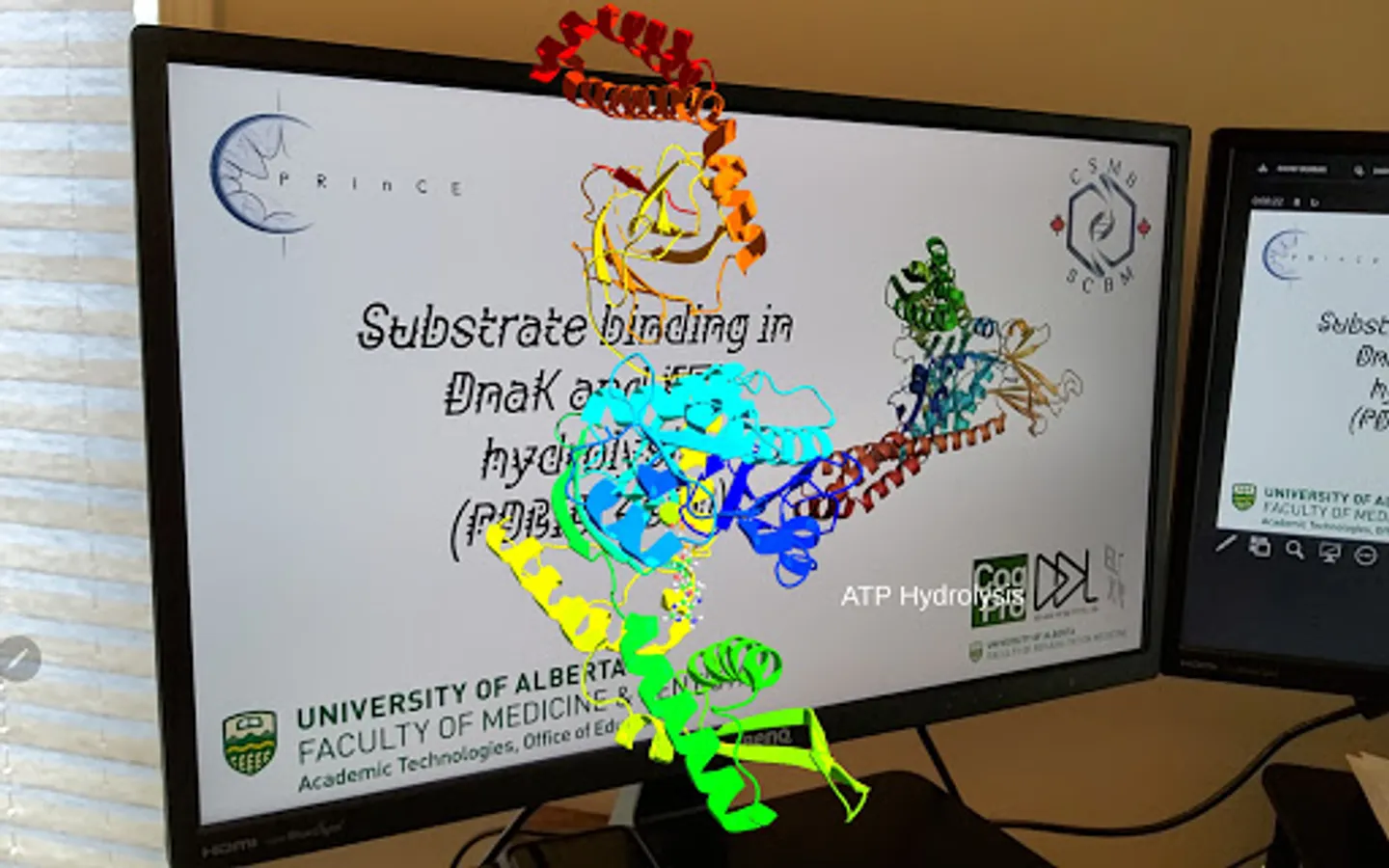 This augmented reality molecular viewer was made for the 2nd meeting of PRinCE (Proteostasis Researchers in Canada, eh), held in conjunction with the 64th Annual Conference for the Canadian Society for Molecular Biosciences. There are eight proteostasis-related structures and animations to see. Simply install the app and look at the printable flashcards (either printed on a piece of paper or on your computer screen) to see the 3D content.