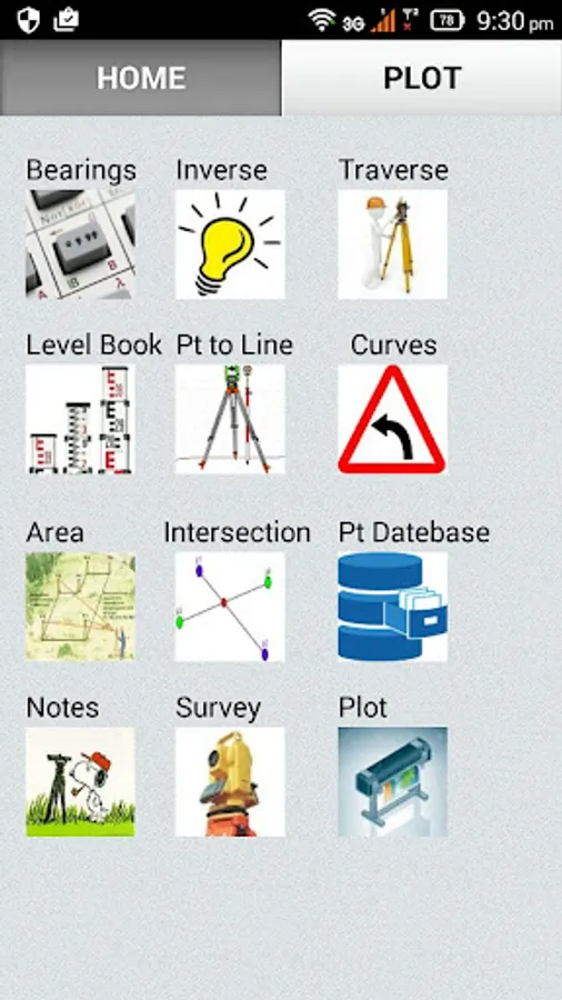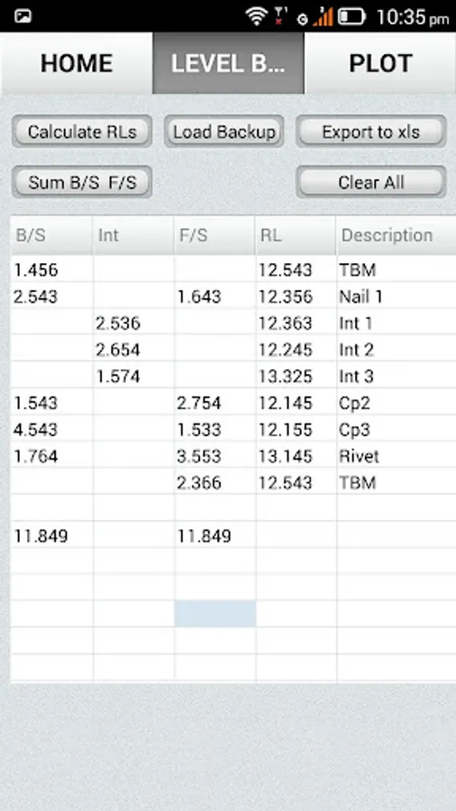 Level Book---> A leveling sheet that allows the surveyor to input readings from a level run and compute elevations on the go.Export the data to a .csv file and send via Email. Never again get to the end of a loop without knowing if there has been a mistake made