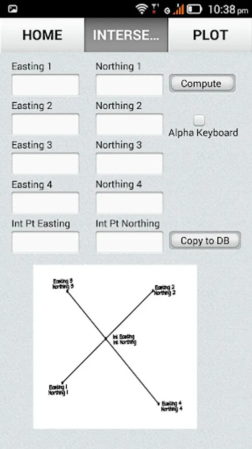 Intersection By Points---> Calculate the coordinates of a point by intersecting lines with known coordinates. Can project a line through when lines don't intersect.