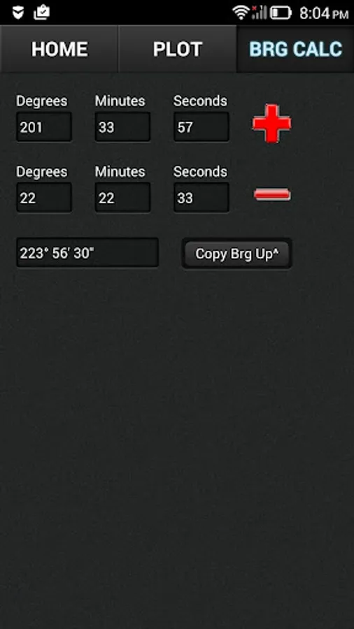 Bearing Calculator---> Add or subtract bearings in DegMinSec format