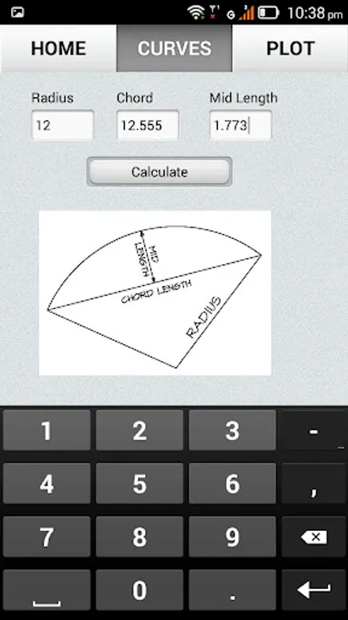 Curve Calc---> Calculate the middle ordinate by knowing radius and chord length.