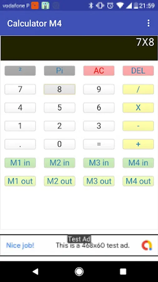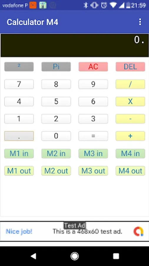Free basic Calculator with 4 memories, simple math operations, with 4 memories to store numbers, free.