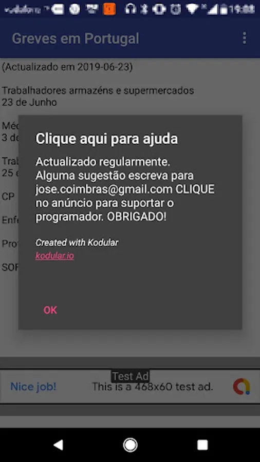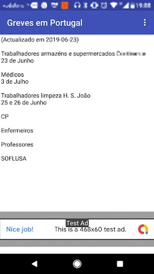 Strikes in Portugal, is a free application, for the user to consult the strikes scheduled for Portugal. It will be updated whenever possible. The date of the update is included in the text. The application is very simple, it only has a splash screen and a help message. Internet connection required to update information.