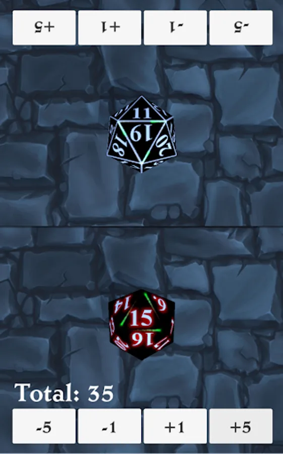 Spin down life counter for games like Magic: The Gathering. Single or two player modes as well as a high roll mode. If score is above 20, decimal number is shown so can be played for different formats such as EDH.