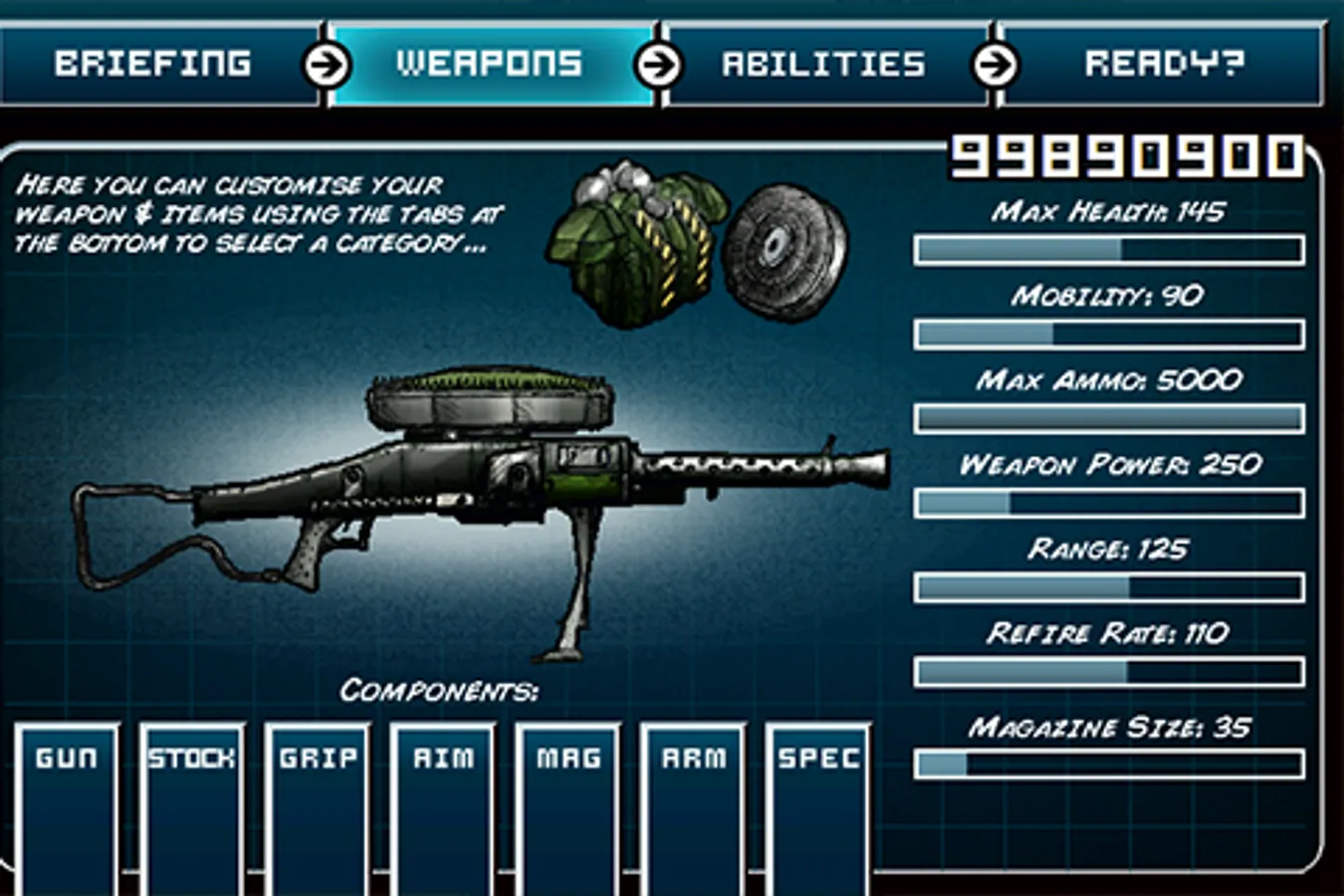 There are over 70 different items and components in the game with which to do this; including 17 core weapons which range from standard rifles to flame-throwers and rocket launchers: Make a fast firing sniper rifle with exploding rounds, or a deadly powerful shotgun with a bayonet for close encounters!
