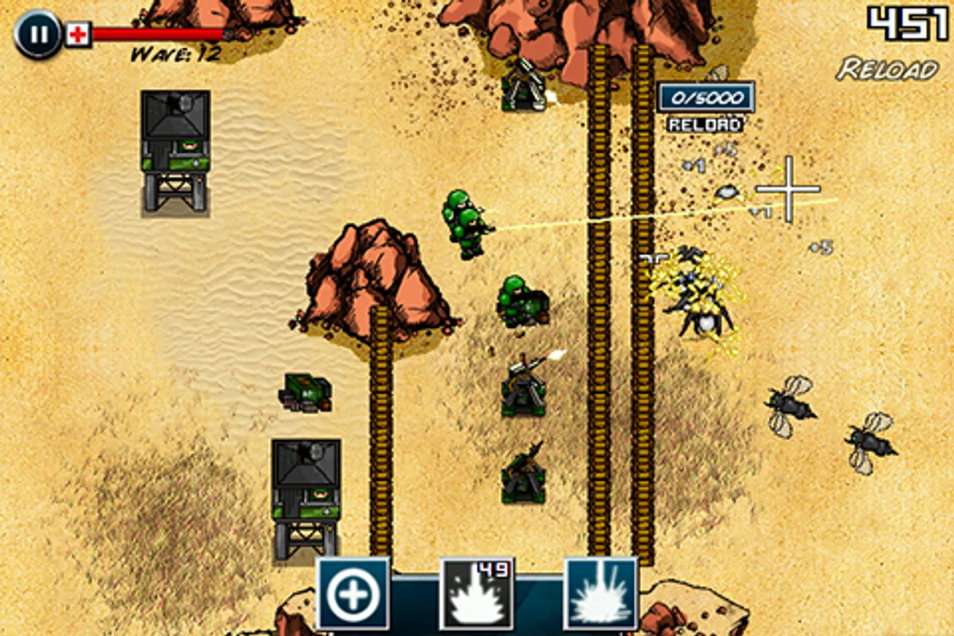 Play through the 10 mission campaign, with beautifully illustrated graphic novel style story panels. Missions range from offence to defence missions- upon which you can build a base to stop the alien horde.