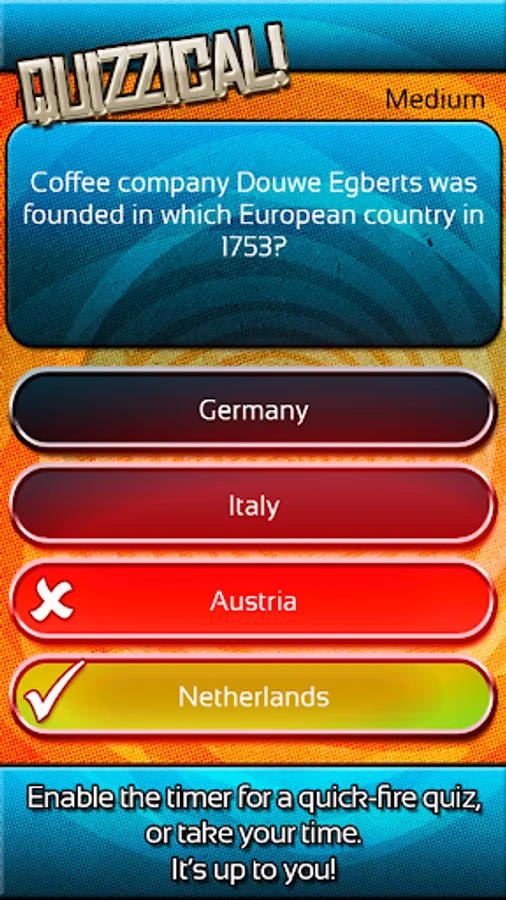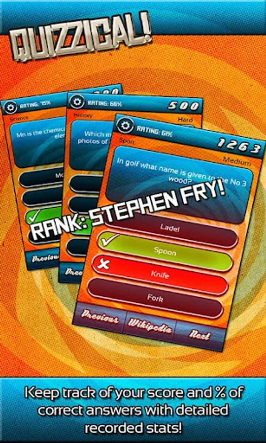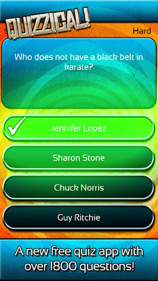 A delicious UI, buttery-smooth interface, and a huge collection of 1800 trivia questions across 10 categories make Quizzical the best and most comprehensive free quiz app!