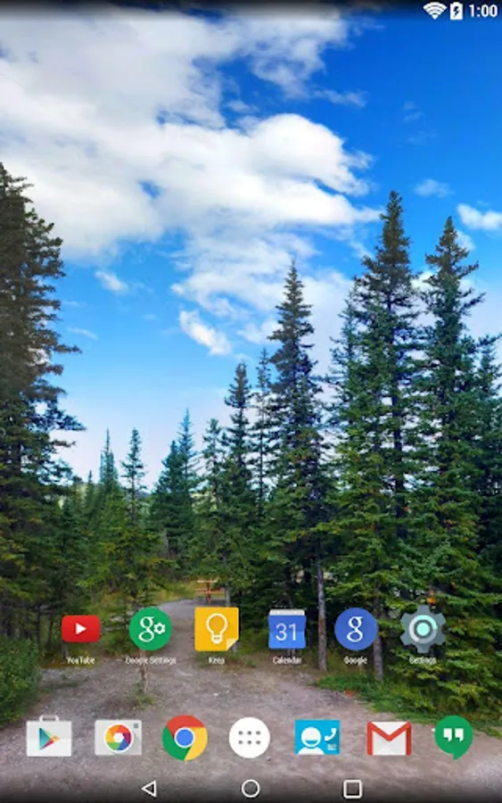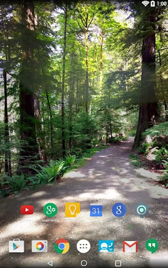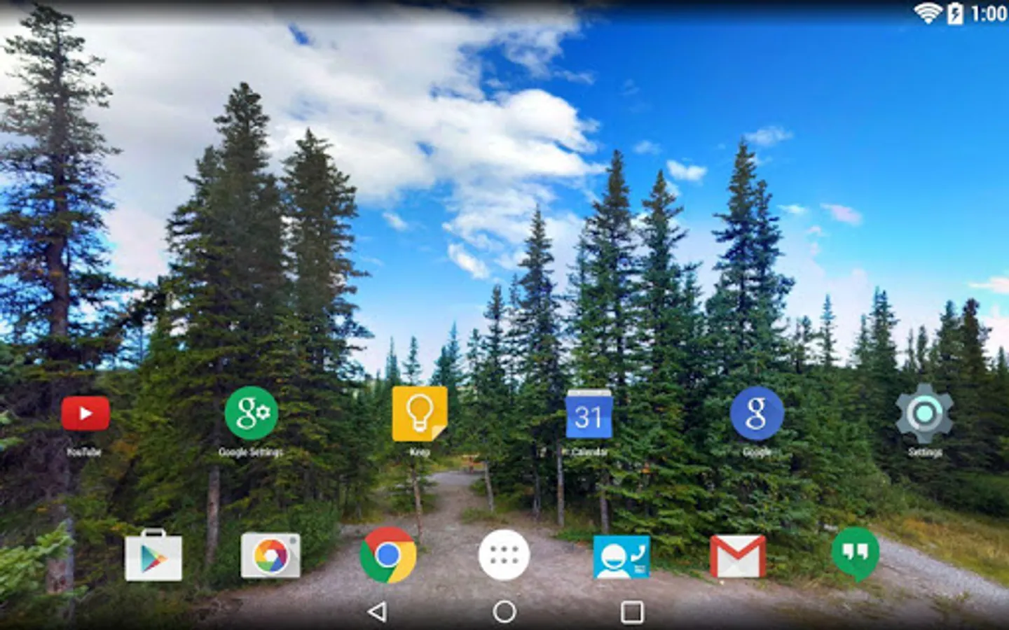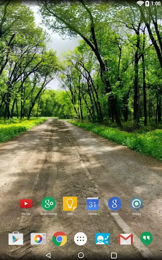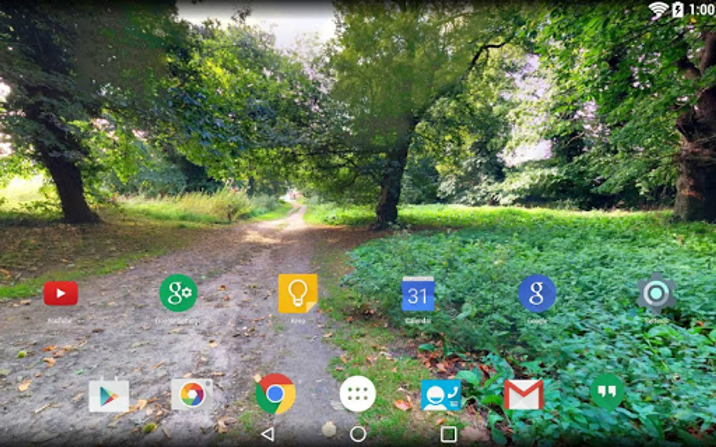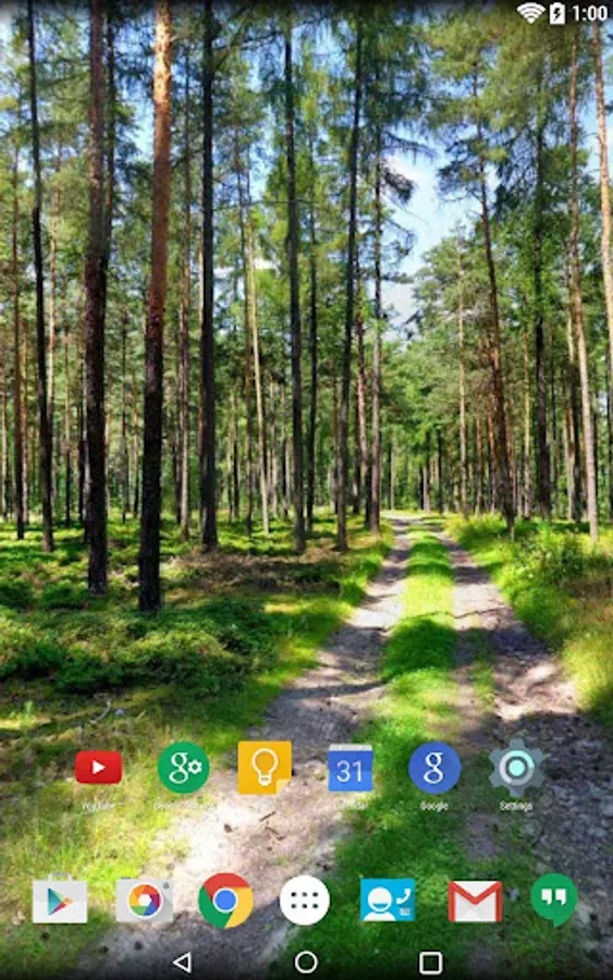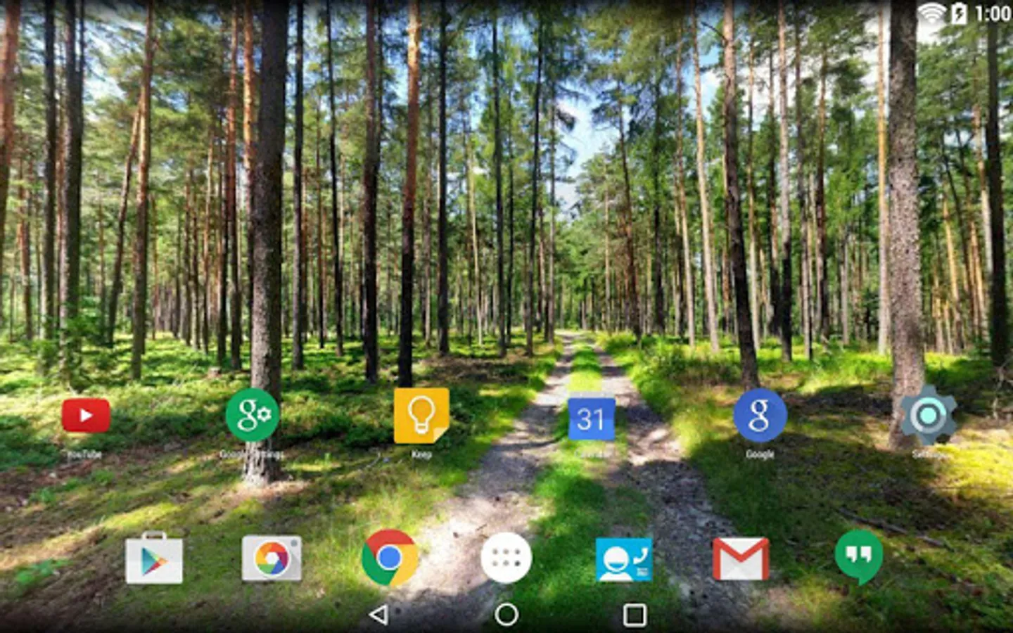 Setting: Menu => Wallpaper => Live Wallpaper => Panorama Wallpaper: Forest Roads