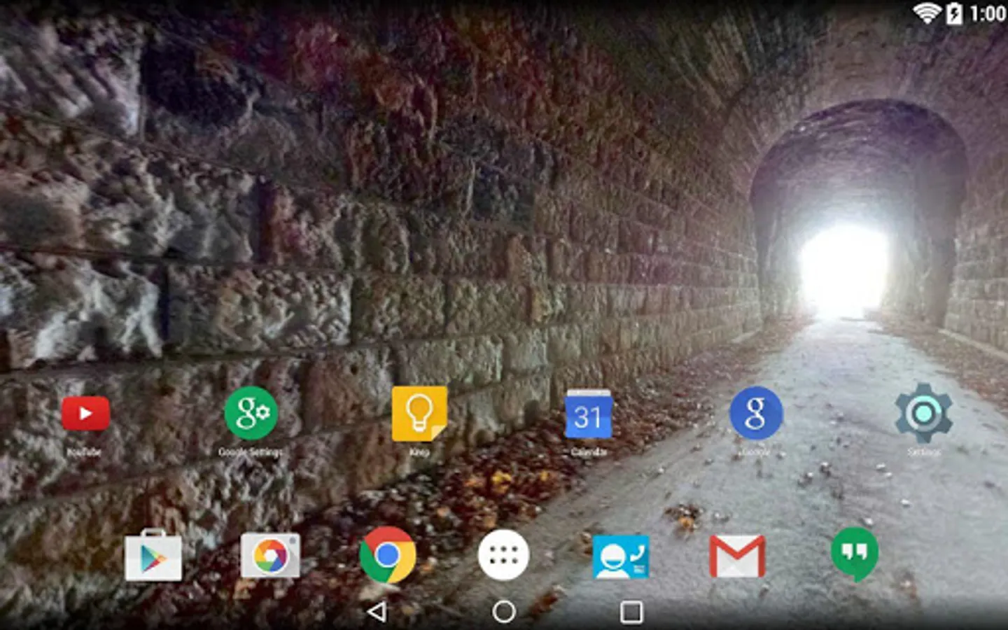 Setting: Menu => Wallpaper => Live Wallpaper => Panorama Wallpaper: Tunnels