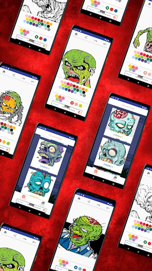 This app is Zombie Coloring Pages for everyone. This adult coloring book free contain many ideas coloring zombie that has all zombie pictures ready to colored for example: ideas coloring horror, scary coloring book and viruses zombie coloring.