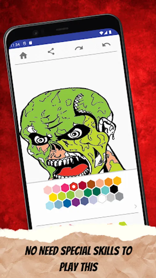 no need to special skill to play this Zombie Coloring Pages. the designs is so simple and intuitive. the colors library is so rich and have many pictures! the categories that can you enjoy: zombie coloring pages for adults, realistic zombie coloring pages, girl zombie coloring pages, dead zombie coloring pages and Halloween Zombie Coloring game. it is all is free totally!