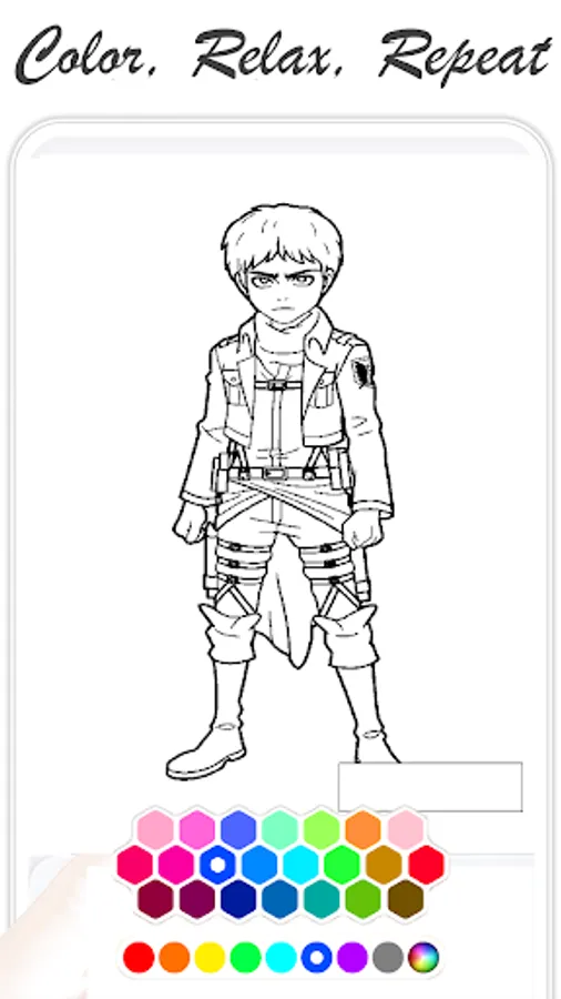 Eren Coloring Book breaks the mold of traditional coloring apps with its unique focus on anime culture, particularly the 'Attack on Titan' series. With us, your coloring game will reach new heights as you bring Eren Yeager and his thrilling adventures to life, one hue at a time.