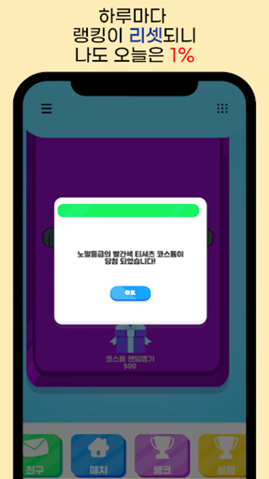 하루마다 랭킹 순위권 1%에게 상품을 지급하는