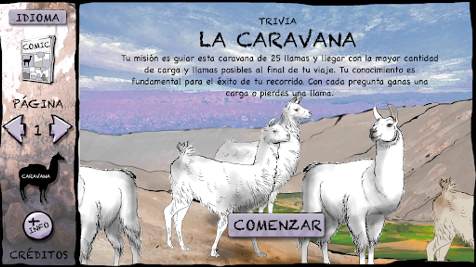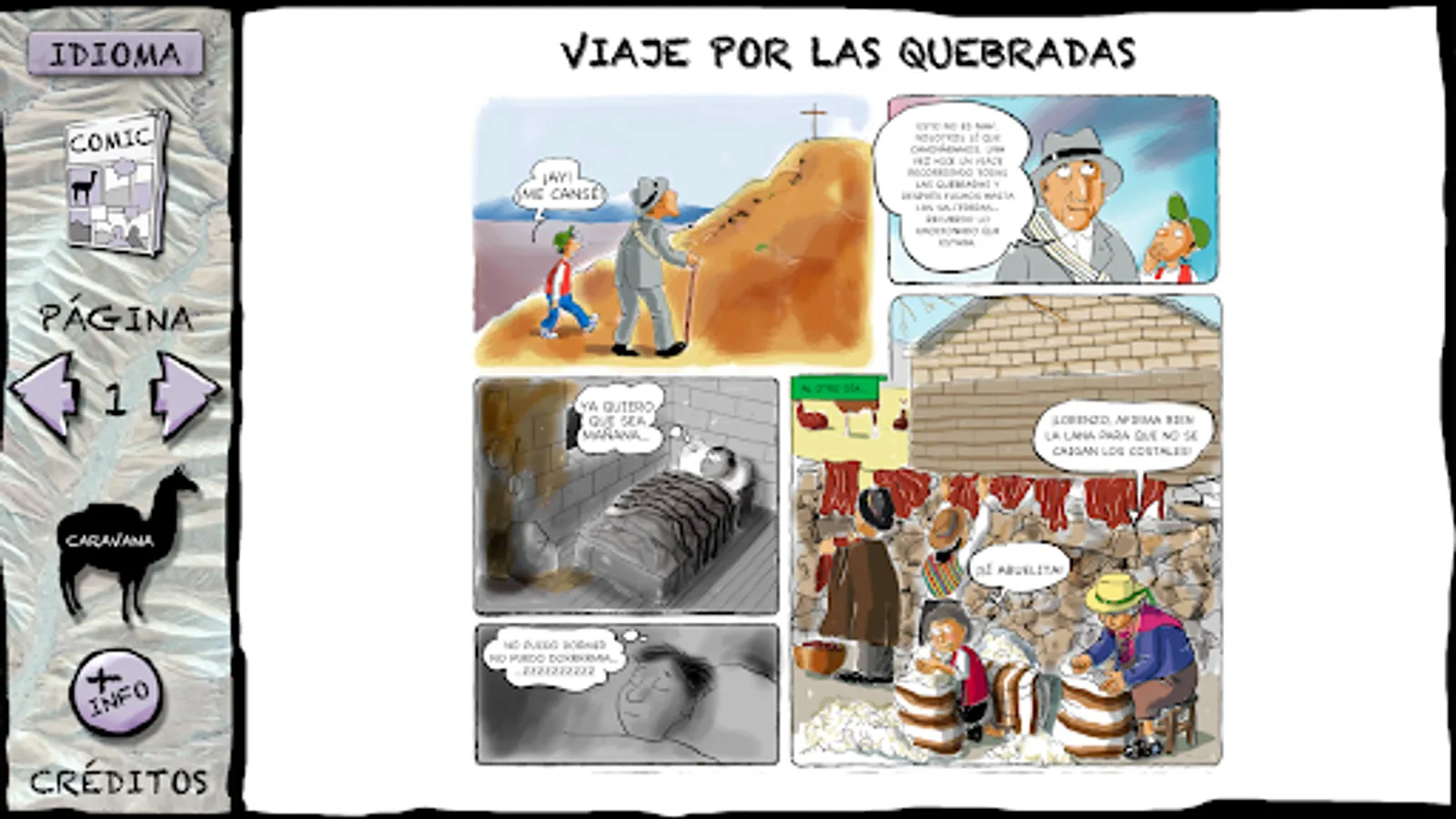 Comic based on the traditional way of life of the communities of the towns of Mamiña, Iquiuca and Quipisca. This application was developed between 2019 and 2021. The contents were selected through a participatory process with the communities included in the credits. Process that was also extended to the script correction and final product stages.