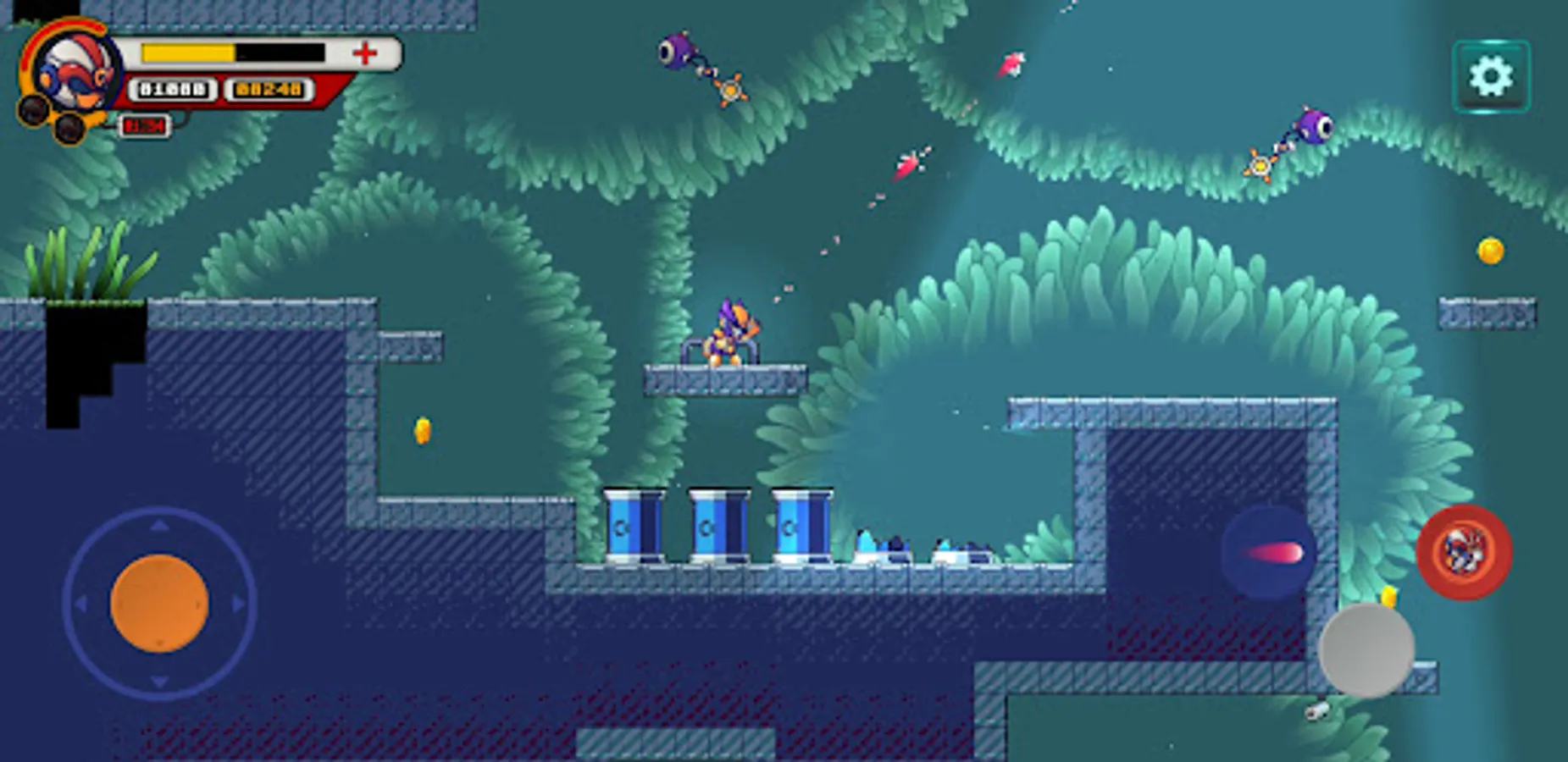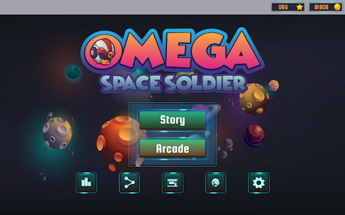 The galaxy is in danger. An alien threat, robot in tow, wants to take over the technology that serves to safeguard interstellar balance and peace. Divided into 3 planets, Fungal, Pluvius, Darkon, this technology is protected inside Commodore containers. Omega, our hero, will fight against the enemies of humanity. A prowess galactic defender, he has the Commodore at his side, who will support him and help him in his battles. His weapons are the blaster armed with quantum energy bullets and the Commodore Engine, a miraculous space suit enhancement system that, thanks to the energy of the galactic crystals, will give him the power necessary to transform itself from Omega to Astro, and from Astro to Ultra, thus becoming stronger and stronger. His appearance will undergo changes, but his fearless heart will always beat for the sake of the galaxy. The game unfolds over 15 levels, five for each planet. Omega will continually clash with enemy robots by engaging in a massive battle against three very strong Bosses, on whose defeat will depend the progress of its mission and the future of all the planets threatened by the looming alien invasion.