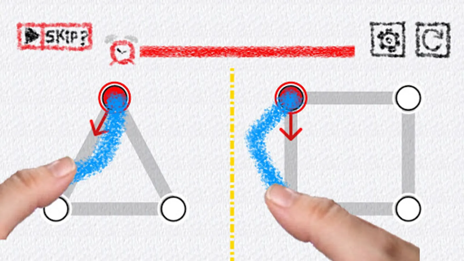 Draw two different shapes using Your two fingers!