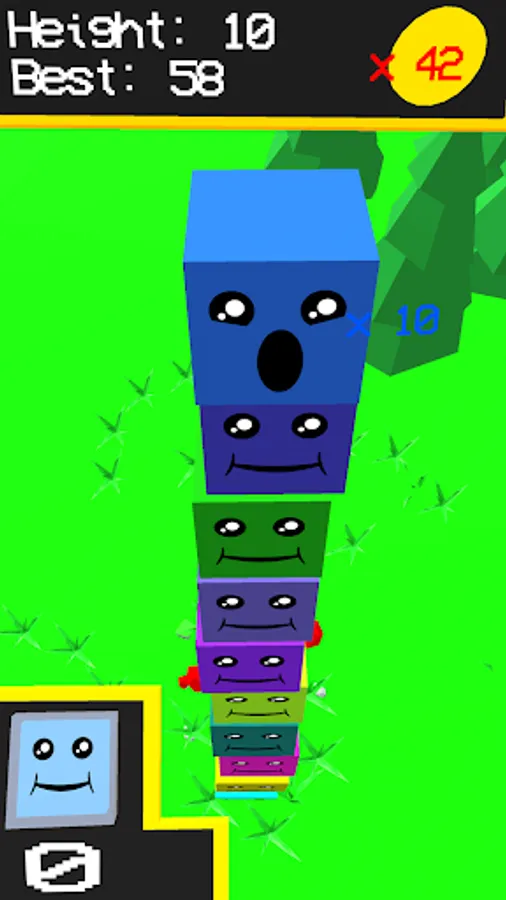 How tall can you build your tower? Use freeze cubes to steady the tower as you build! Equip your cubes with various accessories!