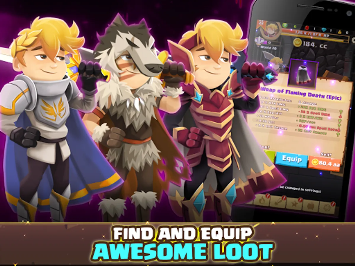 Travel through the wilderness, slaying monsters and collecting epic loot in this Idle RPG! Tap to cast spells, upgrade your hero with unique abilities and craft potions to defeat your enemies! Assign your stat points and click to win in Clicker Knight and epic incremental idle RPG!