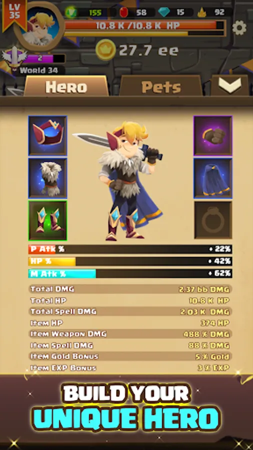 -Unlock many different kinds of pets and level them up to evolve them. Each pet has a unique and powerful ability!